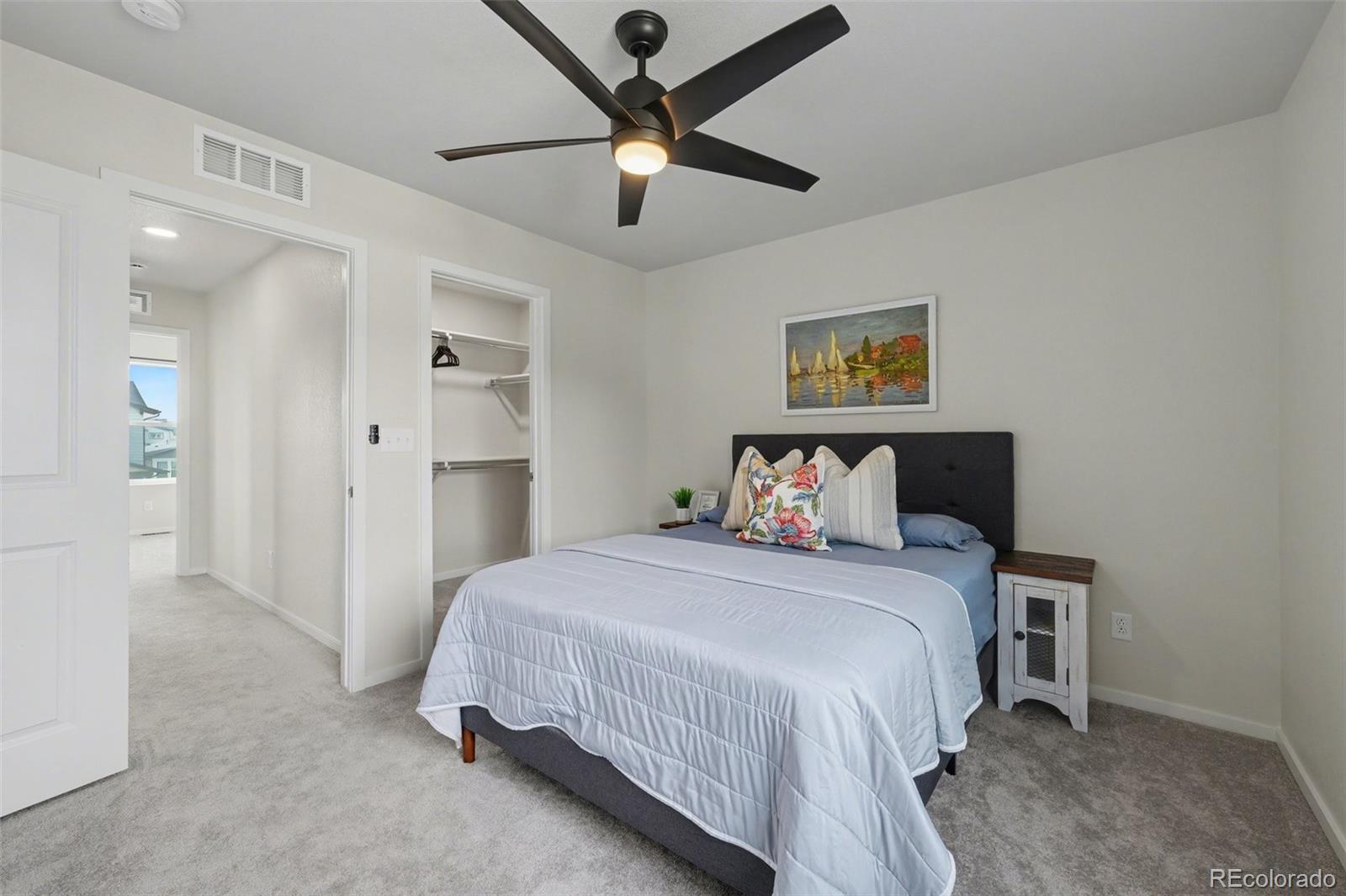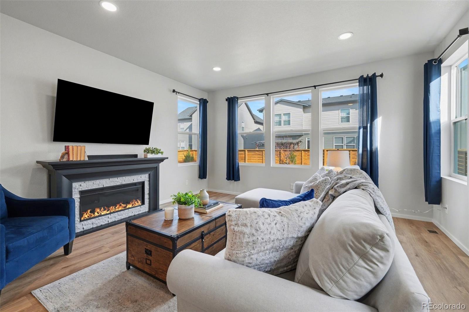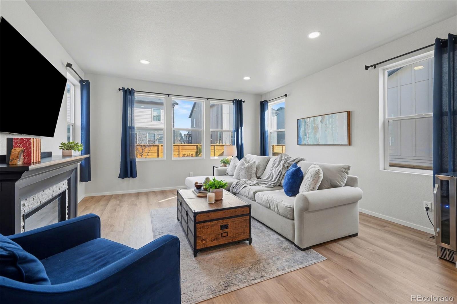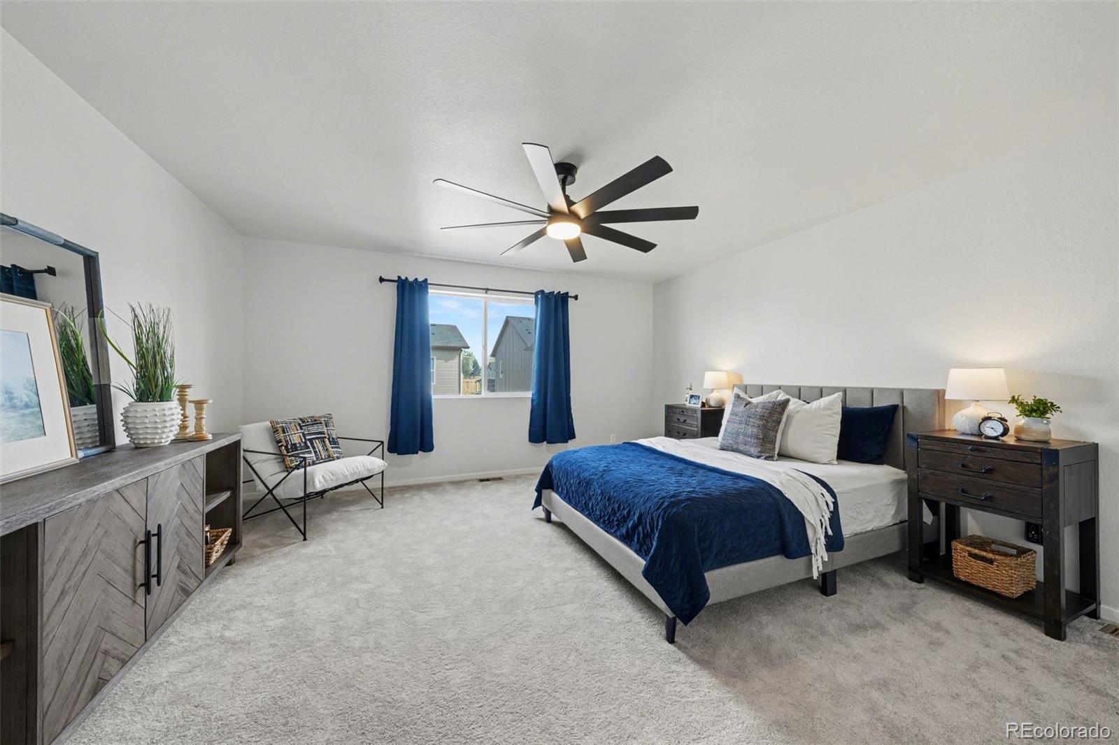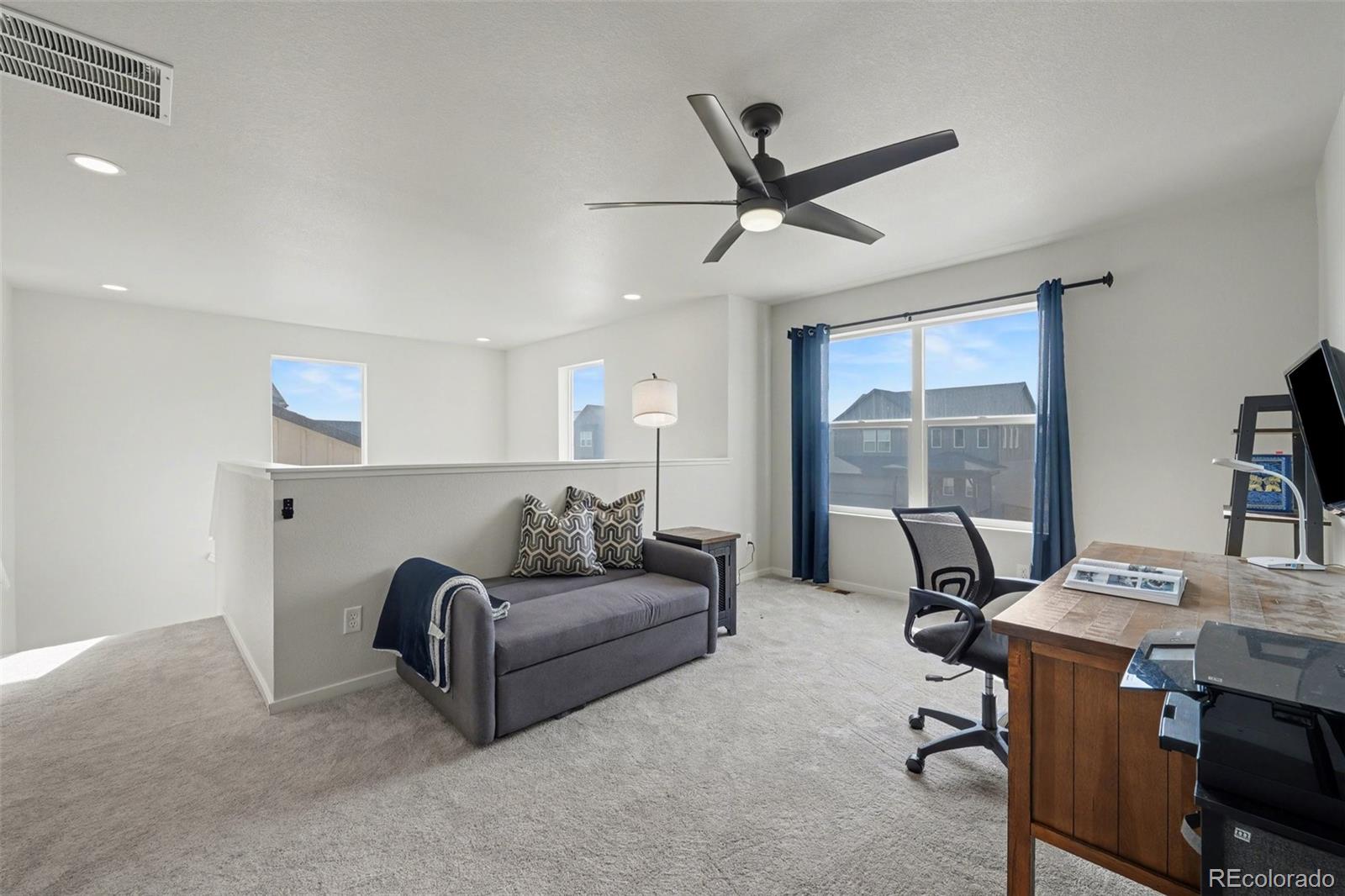 Open-concept 3-bedroom, 3-bath two-story home in the Mosaic neighborhood of Fort Collins with a professionally landscaped backyard and upgraded garage. The kitchen features quartz countertops, white soft-close cabinetry, stainless steel appliances, and an accent backsplash. The main level includes a flexible space suitable for an office or workspace. Upstairs offers a loft, laundry room with side-by-side washer and dryer, and three bedrooms. Additional updates include modern light fixtures, ceiling fans, and updated cabinet hardware. The unfinished basement includes rough-in plumbing for future expansion. The insulated two-car garage is drywalled and professionally finished with heating, air conditioning, EV-ready wiring, and a high-lift garage door. The backyard is professionally landscaped with low-maintenance turf, drip irrigation, and a sprinkler system, along with a concrete patio, freestanding deck, and apple tree. Custom fencing surrounds the front porch. Located in the Mosaic neighborhood with access to community amenities including a pool, pickleball courts, parks, and trails, and convenient access to I-25, the Fort Collins-Loveland Airport area, and Old Town Fort Collins.
