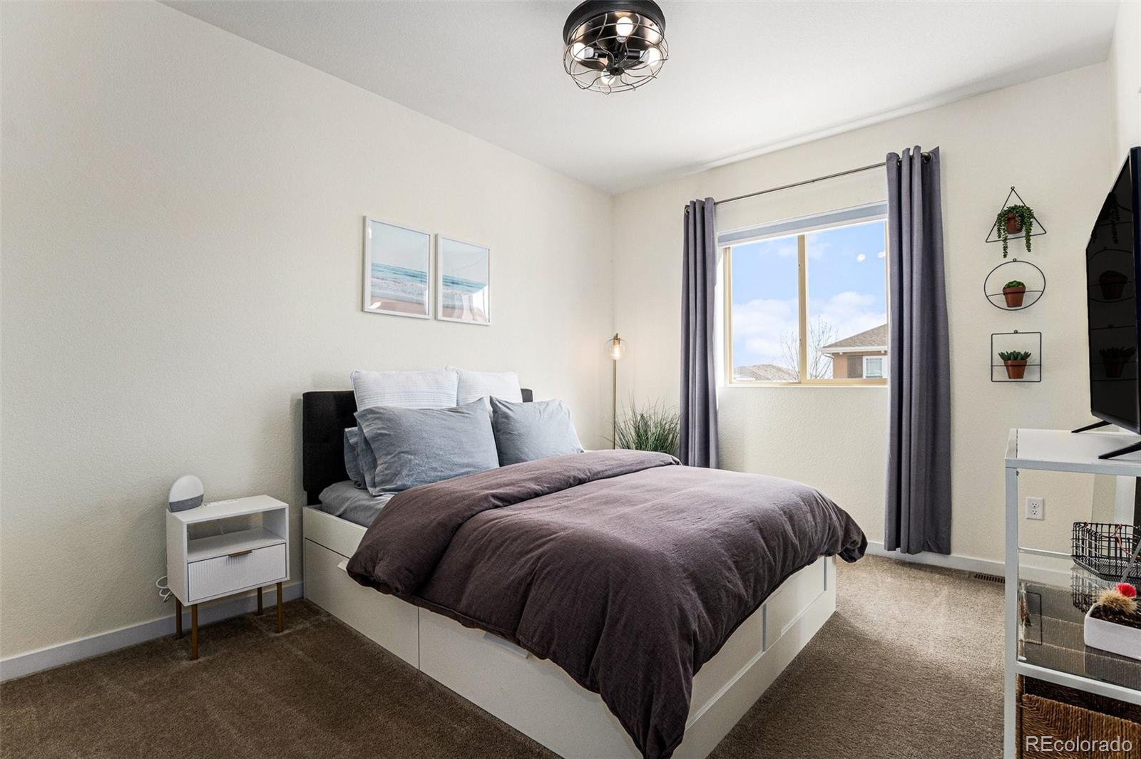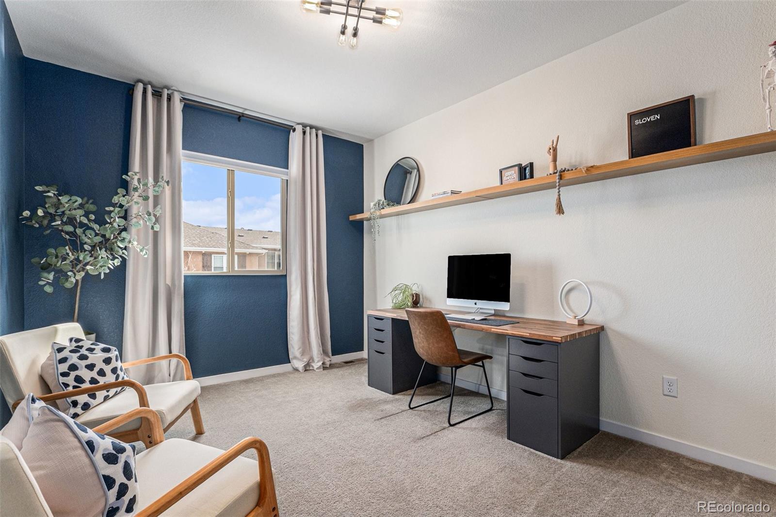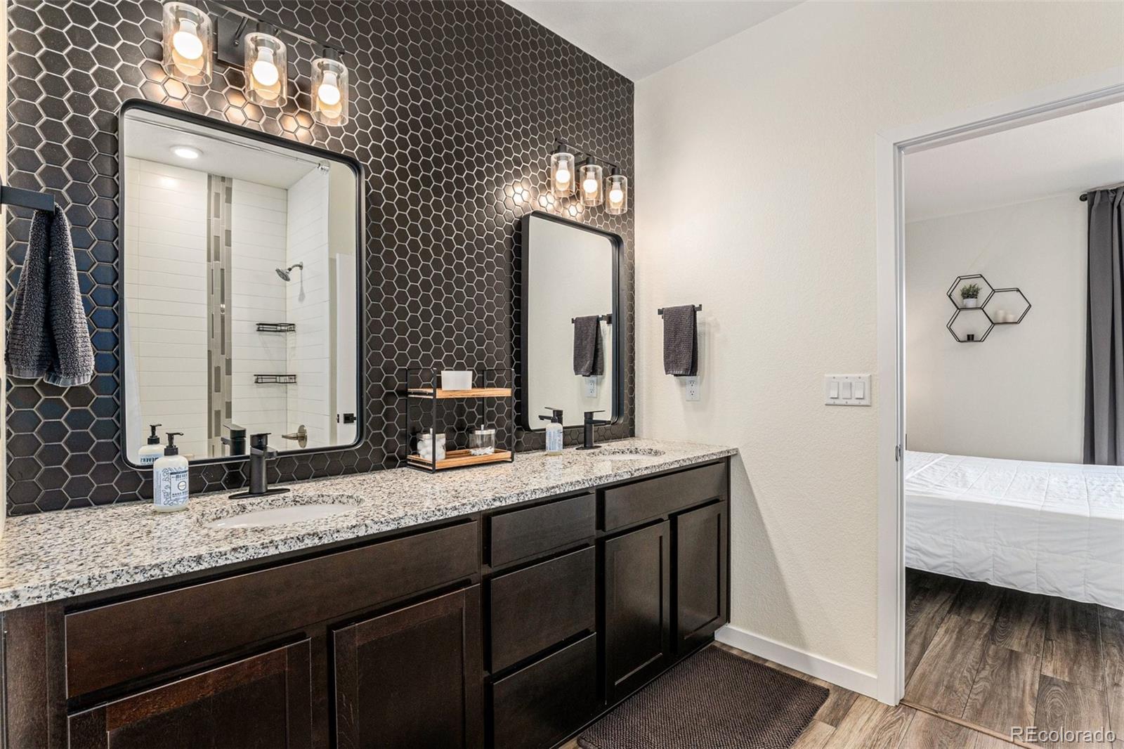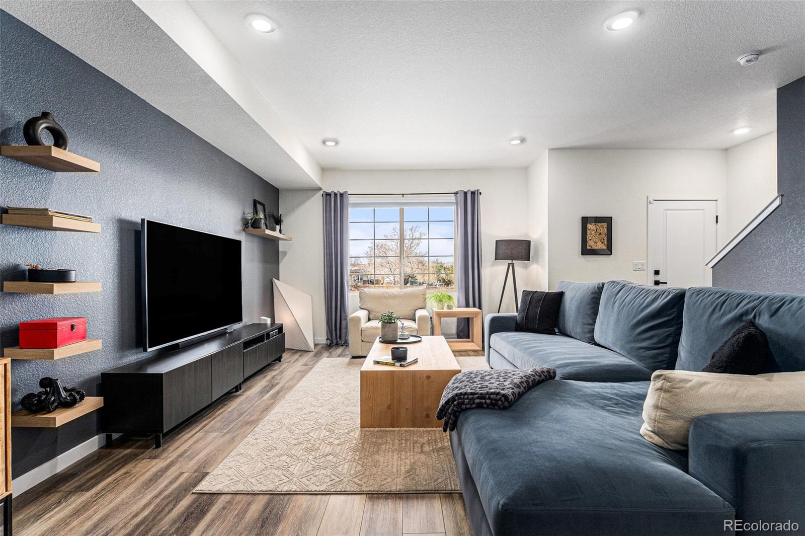 3-bedroom, 3-bath open-concept townhome in Thornton featuring numerous premium builder-selected upgrades throughout. The kitchen features maple cabinetry, granite countertops, soft-close drawers, a gas range, and an upgraded sink, with coordinating cabinetry and granite carried into the bathrooms. Floor-to-ceiling tile enhances each shower, including custom tile detail in the primary bath. Luxury vinyl plank flooring highlights the main living areas, complemented by upgraded lighting, door hardware, and plumbing fixtures. Additional features include a tankless water heater and smart home elements such as a Nest doorbell, Nest thermostat, SimpliSafe security system, and a WiFi-enabled smart lock. A 2-car attached garage and access to community amenities, including a fitness center, pool, and hot tub, add everyday convenience. Close to Lambertson Lakes Open Space, trails, and I-25 for easy access to recreation and commuting.